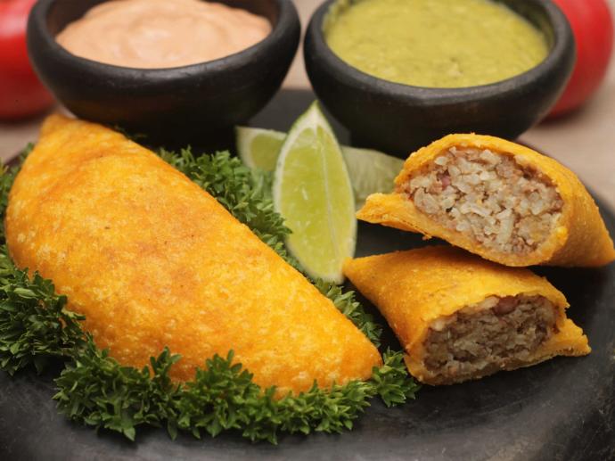 Es uno de los antojos más representativos de la gastronomía de Medellín, se prepara con una masa de maíz amarillo que se rellena con carne, papa o una mezcla de ambos ingredientes. Luego se fríe hasta alcanzar una textura dorada y crujiente por fuera, mientras conserva en su interior un relleno suave y lleno de sabor. Este popular amasijo suele acompañarse con ají casero o unas gotas de limón, lo que realza aún más su sabor característico. Es muy común encontrarla en panaderías, plazas de mercado y puestos de comida callejera, donde forman parte de la auténtica comida típica local.